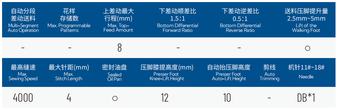 2.上差动量与拉筒送布量均可通过专用旋钮调控,差动量调节精准、拉筒行程最大6mm,缝中可调,便捷直观;