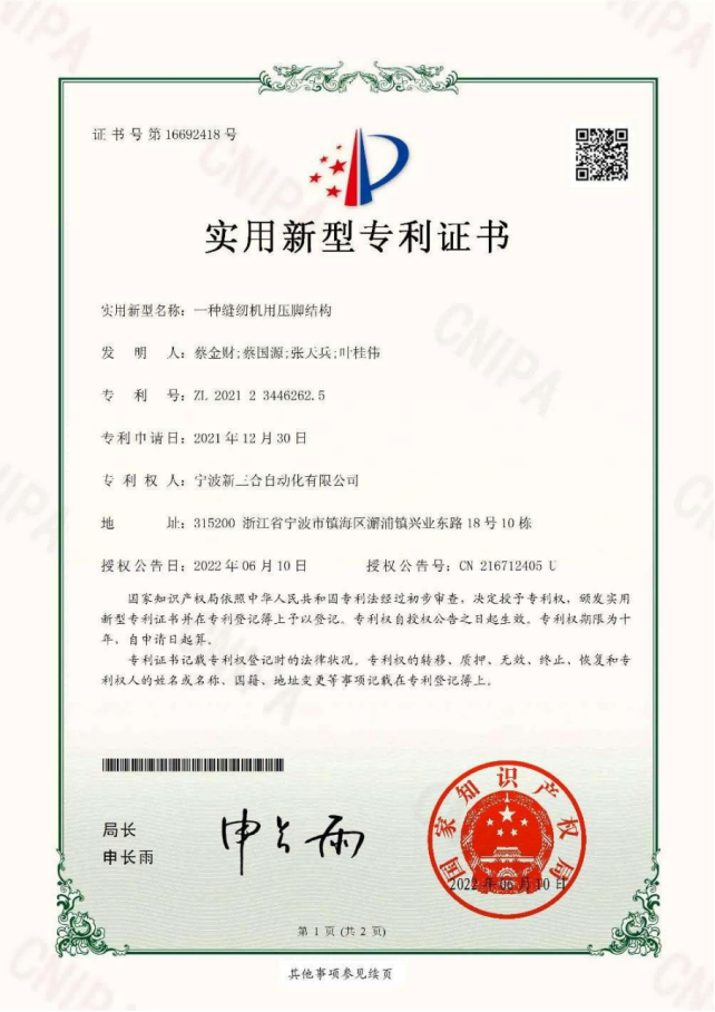 专利证书
