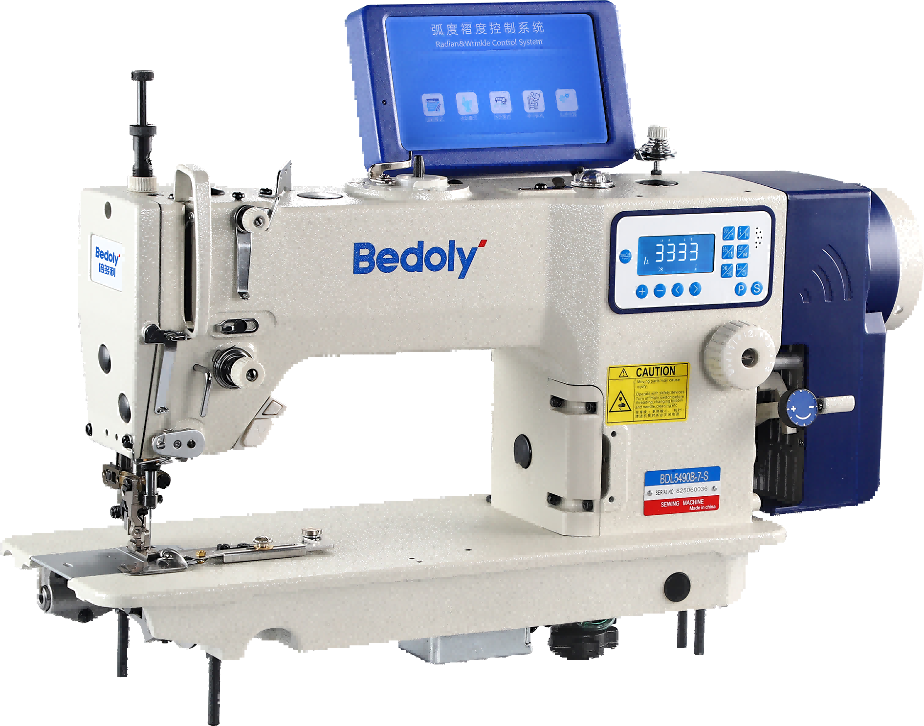 1.自主研发多段皱度控制,支持不同面料弧形下摆缝制,不起扭不缩皱;
