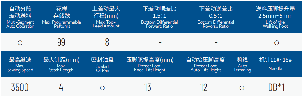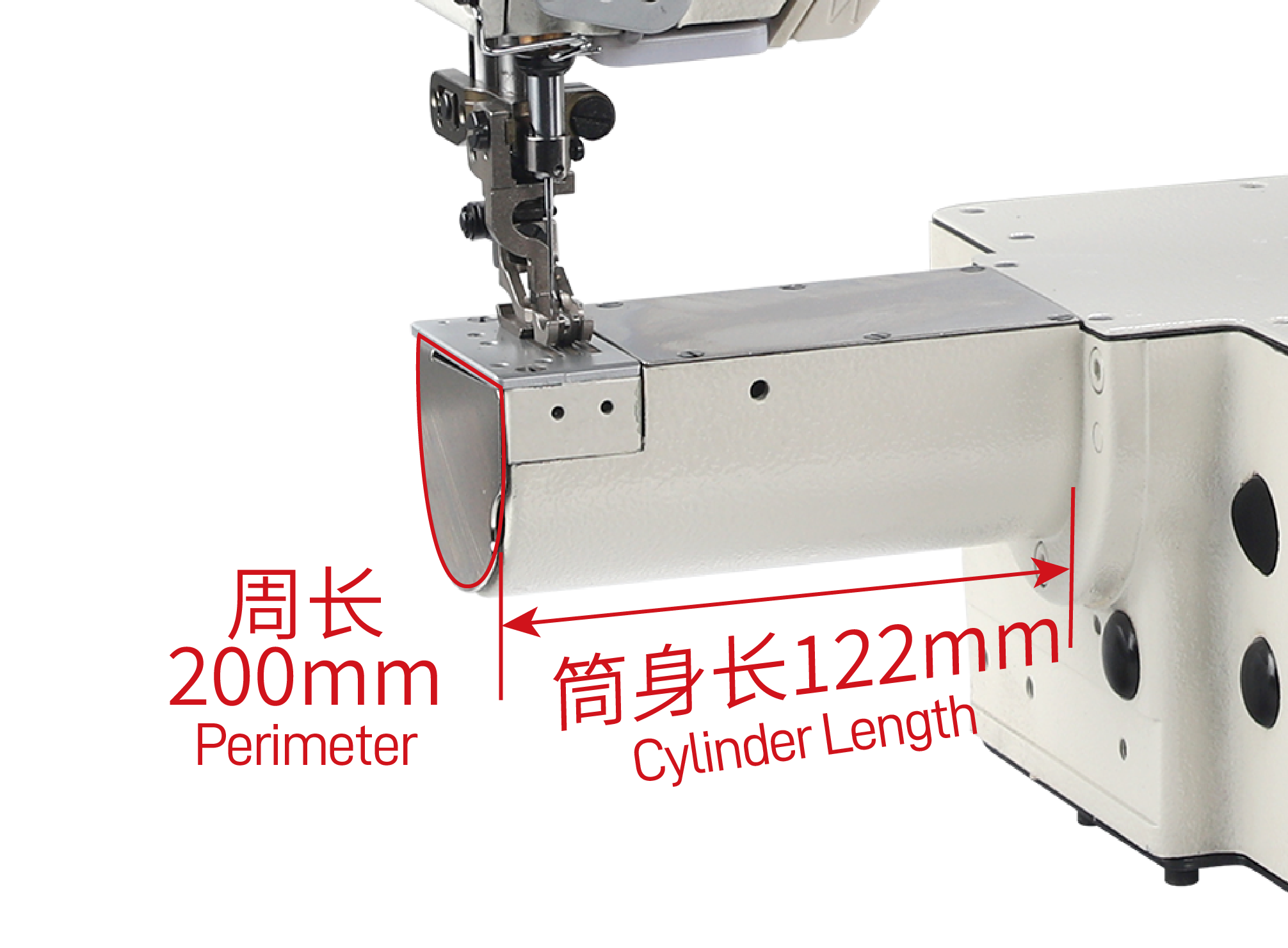 4.圆筒锁式线迹,筒长增至122mm(标准款88mm),更适用于裤脚、袖口等长筒位缝制;