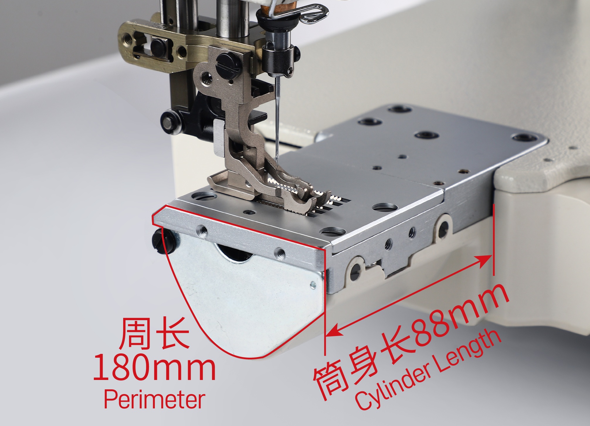 2.紧凑筒身设计:筒身长88mm,周长180mm,适合小口径的卷边、压线、打花边等工艺;