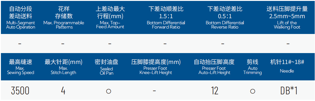 2.全新强送料机构,力量大、稳定性高,牙齿耐变形,更擅长厚料缝制;