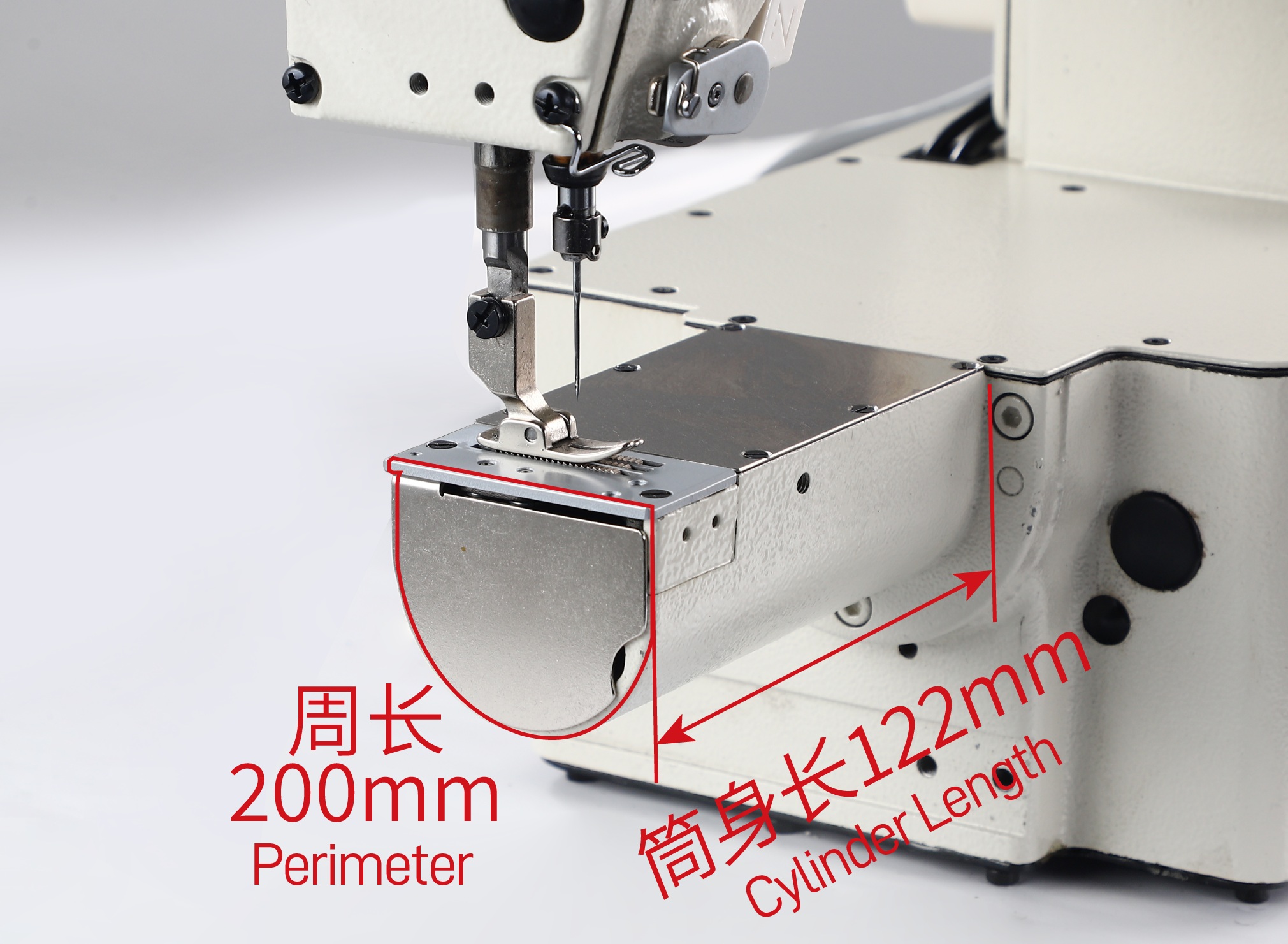 5.圆筒锁式线迹,筒长增至122mm(标准款88mm),更适用于裤脚、袖口等长筒位缝制;