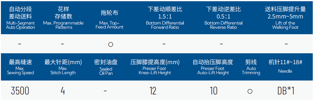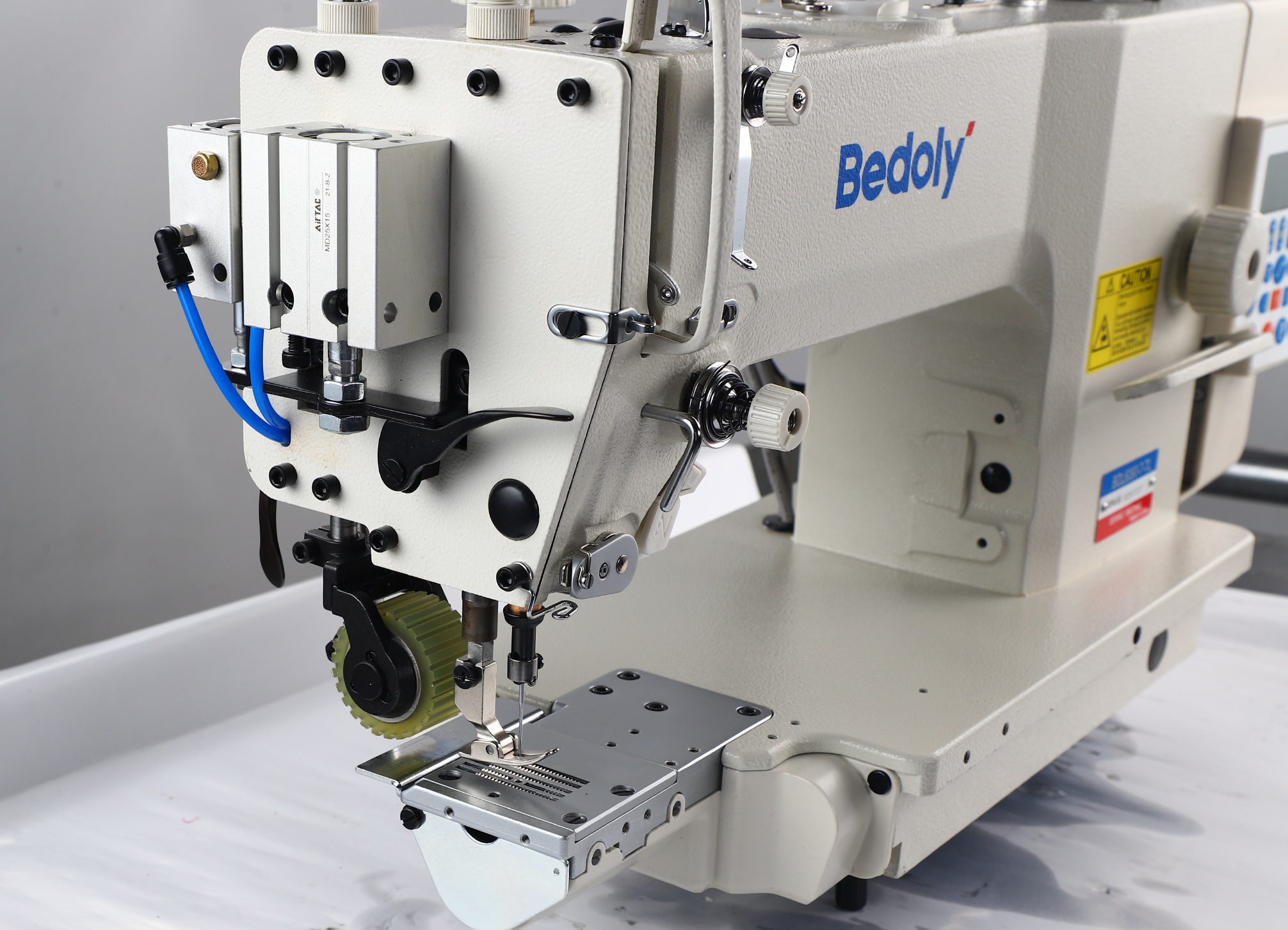 内置上拖轮,近压脚、力量大、调节方便,缝纫更快、更平整。