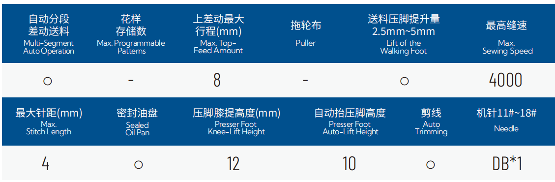 1.电子式上差动调节:支持多种差动量一键切换,最多可设置16段缝纫流程;