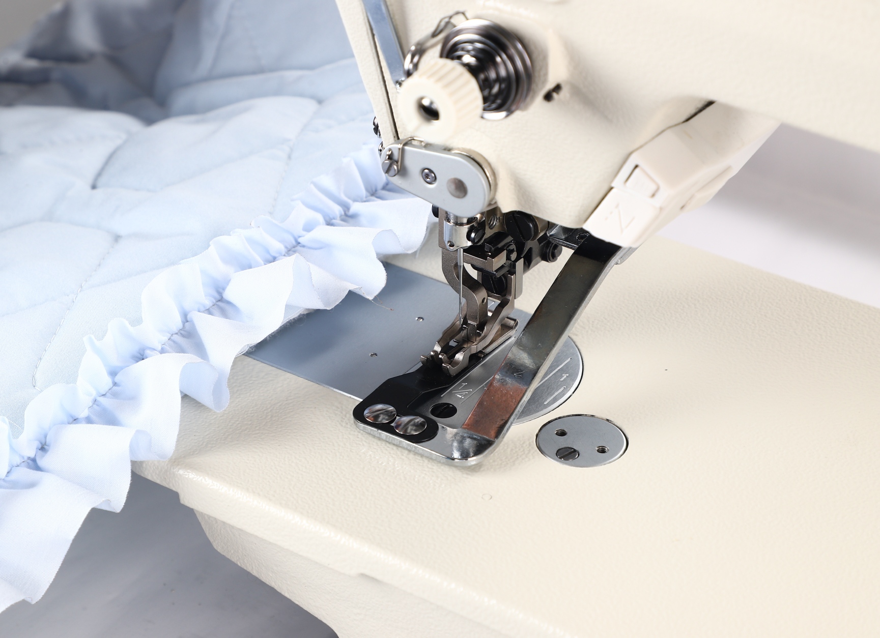 1.旋钮调节上差动送布量,灵活切换同步/差动模式,实现均匀打褶,也可防错位保平整。