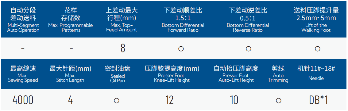 1.具有上、下差动调节送布量功能,适用于上拉链、上袖、拼缝压止口线、上下缩皱或上皱下平,上平下皱等多场景应用;
