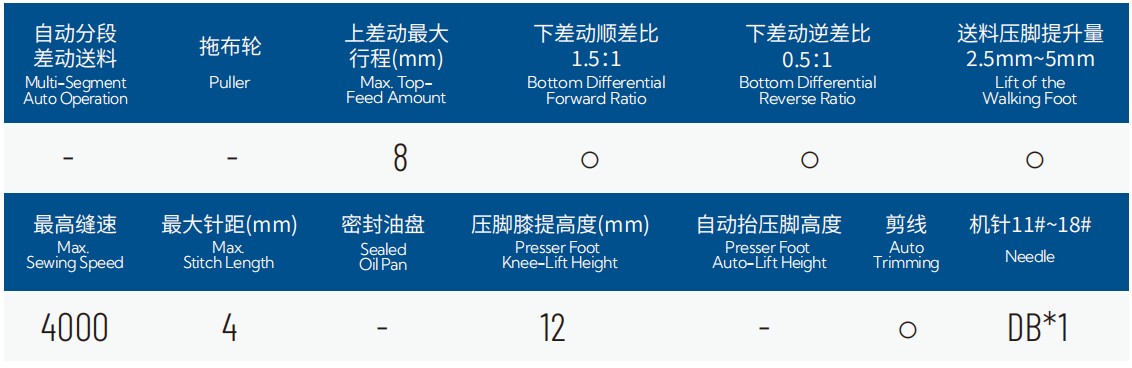 1.具有上、下差动调节送布量功能,适用于上拉链、上袖、拼缝压止口线、上下缩皱或上皱下平,上平下皱等多场景应用;