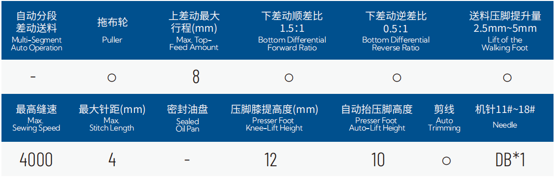 1.具有上、下差动调节送布量功能,适用于上拉链、上袖、拼缝压止口线、上下缩皱或上皱下平,上平下皱等多场景应用;