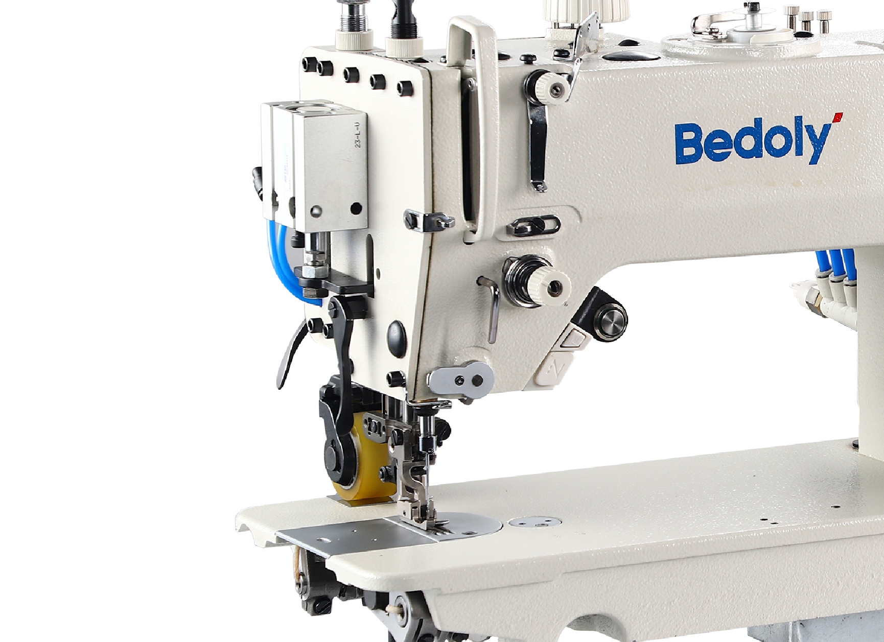 内置上拖轮,近压脚、力量大、调节方便,缝纫更快更平整。