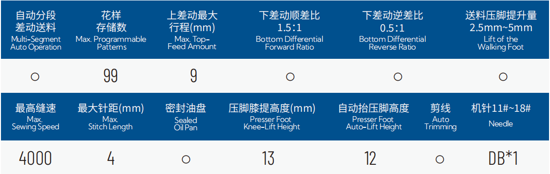 2.全步进控制针距、剪线、抬压脚、上下差动量,并且相互联动;