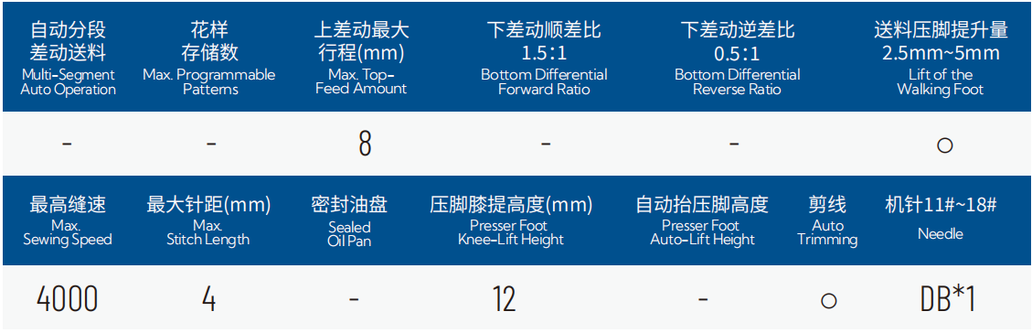1.旋钮式上差动送布:防皱防扭,薄料、羽绒、复合面料缝纫更平整,适用更广;